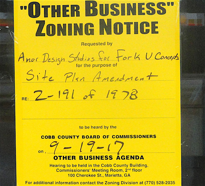 One other thing to note about the Taqueria Tsunami case: It’s considered “other business” in Cobb zoning parlance since it’s a site plan amendment proposal, instead of a pure rezoning matter.