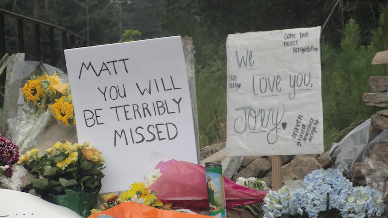 The two victims of an East Cobb fatal accident on Lower Roswell Road this week were remembered by friends at the scene. (East Cobb News photos by Wendy Parker)